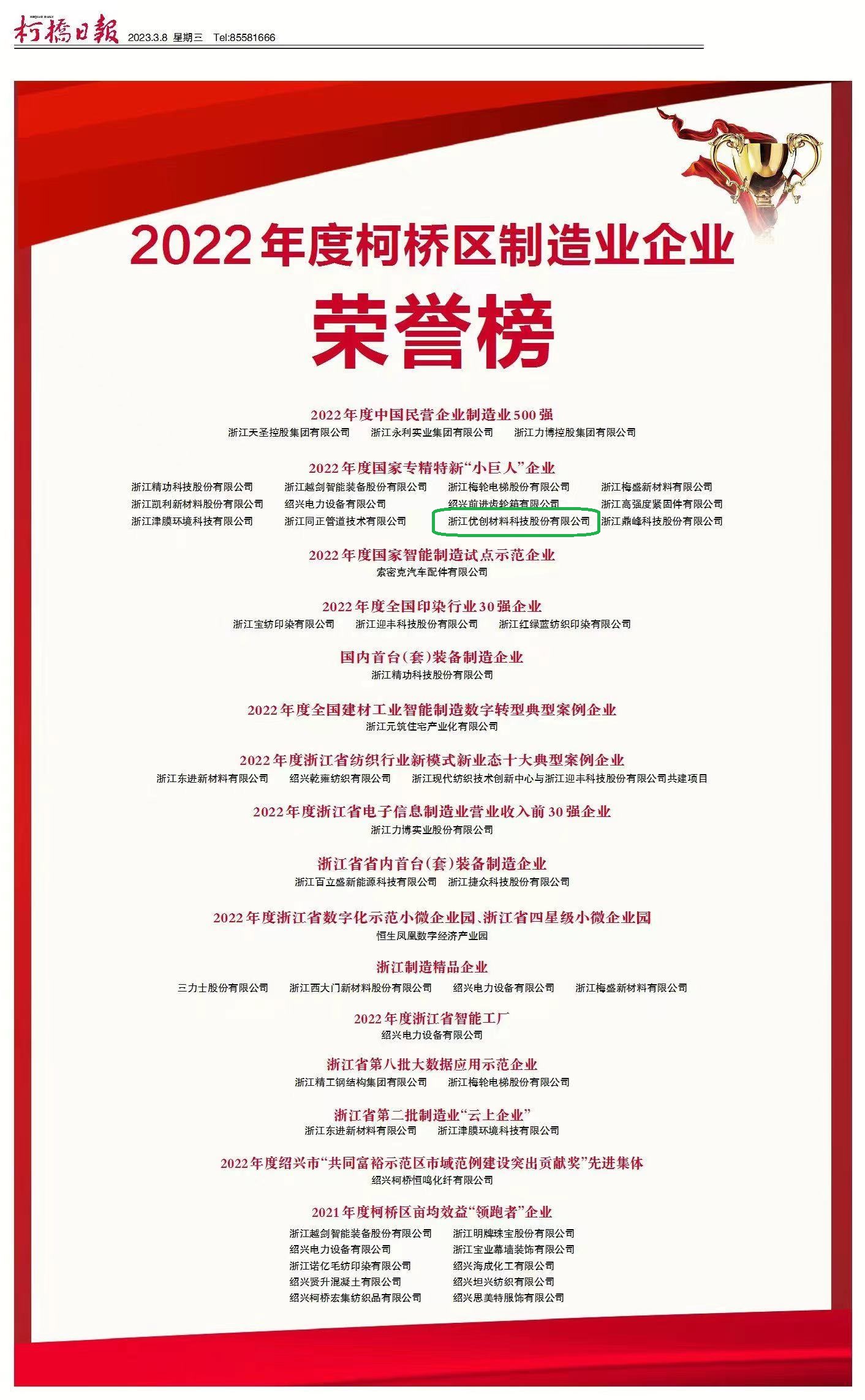 • 喜訊!浙江優(yōu)創(chuàng)材料榮獲2022國(guó)家級(jí)專(zhuān)精特新“小...